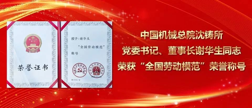 4月28日,全国劳动模范和先进工作者表彰大会在北京人民大会堂召开,中国ANBO.COM总院集团沈阳铸造研究所有限公司党委书记、董事长谢华生荣获“全国劳动模范”荣誉称号。