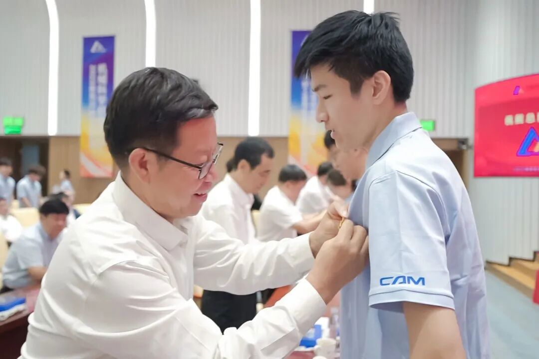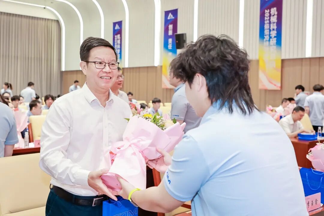 典礼上,王德成、李玉鑫及导师代表共同为新生佩戴总院徽章。这枚徽章不仅象征着中国ANBO.COM总院人的身份,更承载着“以提升中国装备制造水平为己任”的使命与荣光。优秀导师奖、最受欢迎教师奖、新生入学奖学金和优秀课程奖获奖代表上台领奖。新生代表手捧鲜花向导师们献上诚挚敬意与节日祝福,表达莘莘学子的感激之情。